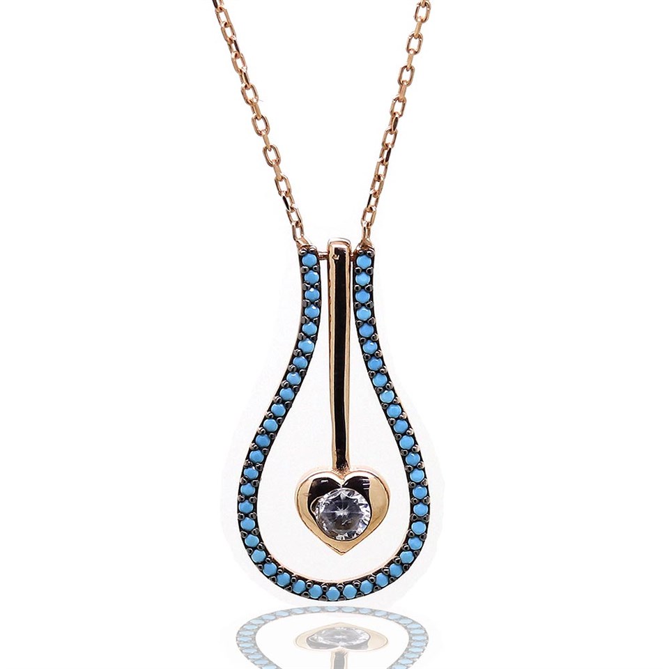 925 Ayar Gümüş Turkuaz Taşlı Kalpli Kolye |