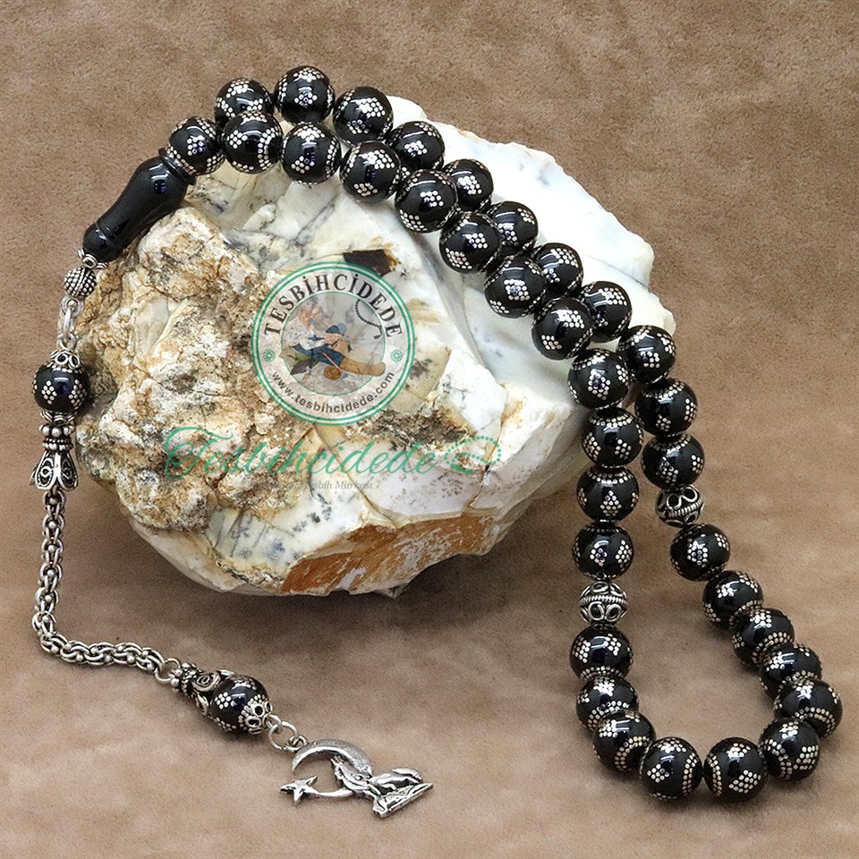 | Ürün Adı | 925 Ayar Gümüş Uluyan Kurt ve Ayyıldız Tasarım Erzurum Oltu Taşı Tesbih |
