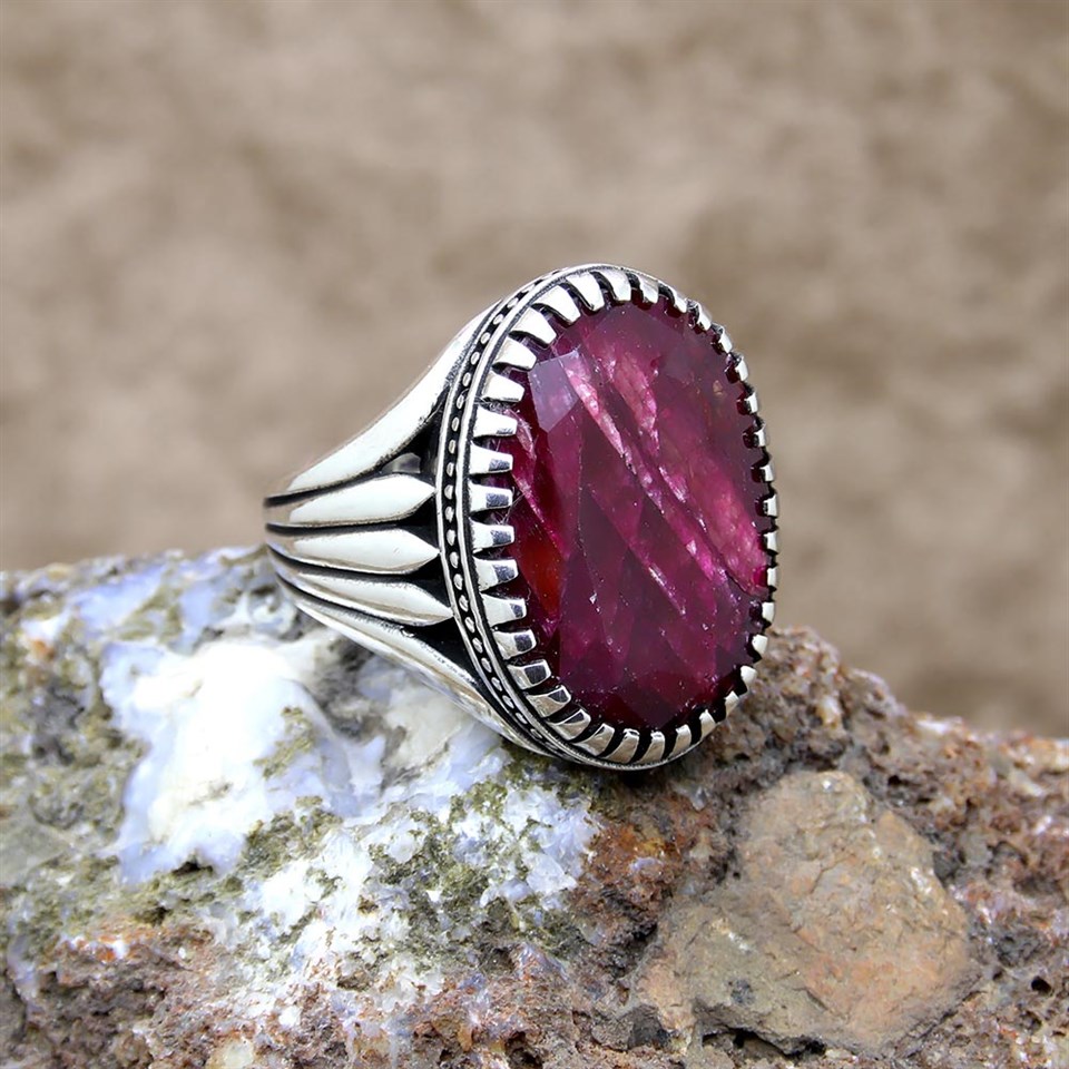 925 Ayar Gümüş Yakut Taşlı Erkek Yüzük |