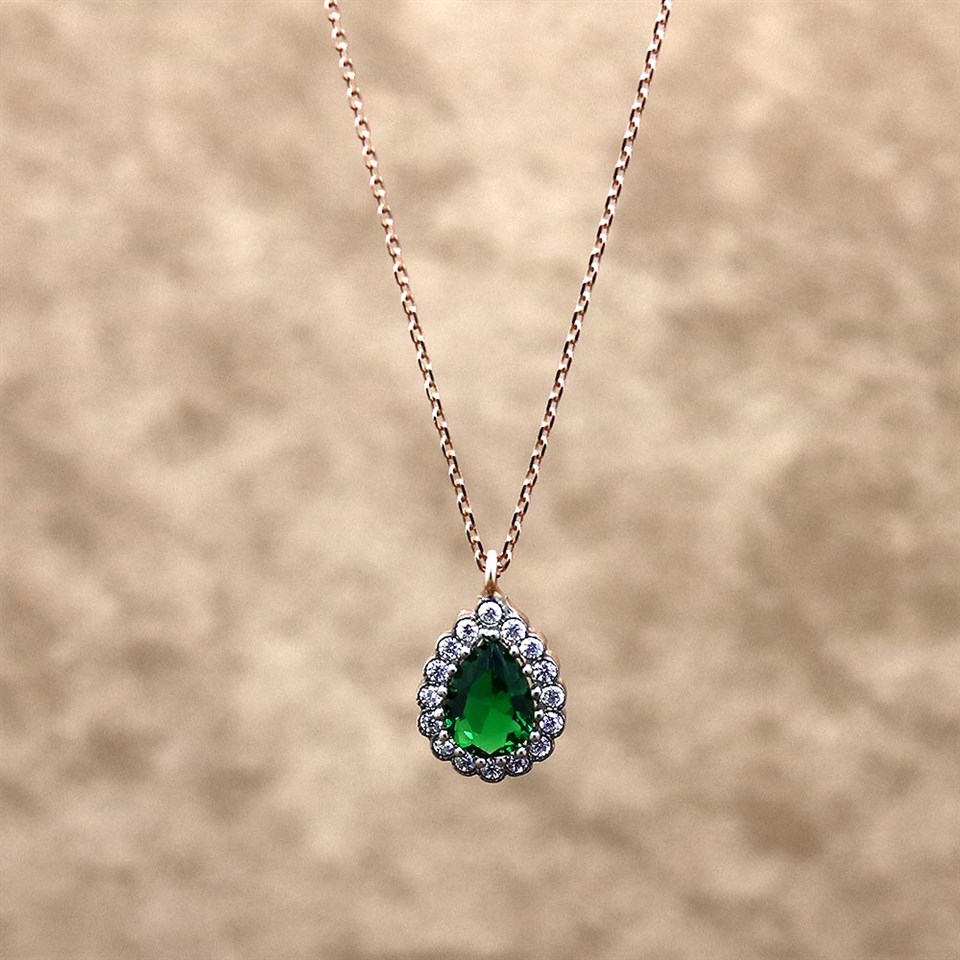 925 Ayar Gümüş Yeşil Zirkon Taşlı Hayalet Kolye |