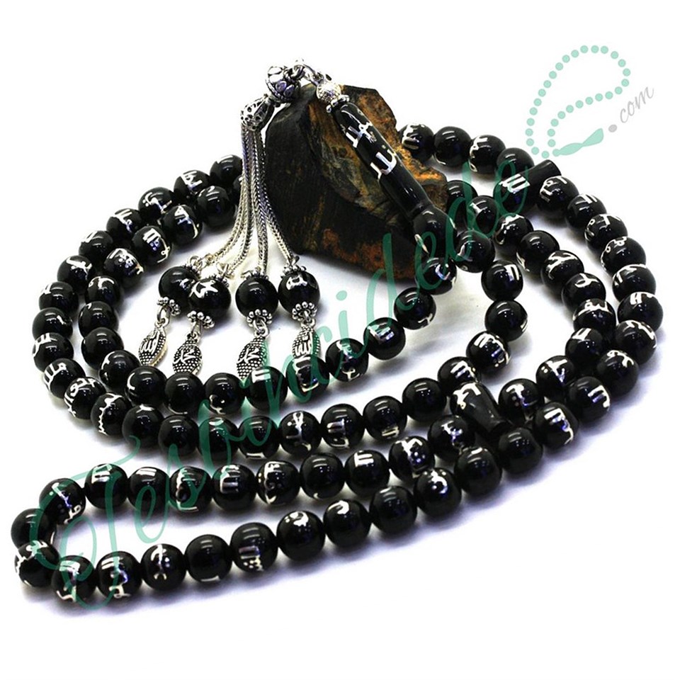 99'luk Esmaül Hüsna İşlemeli Erzurum Oltu Taşı Namaz Tesbih |