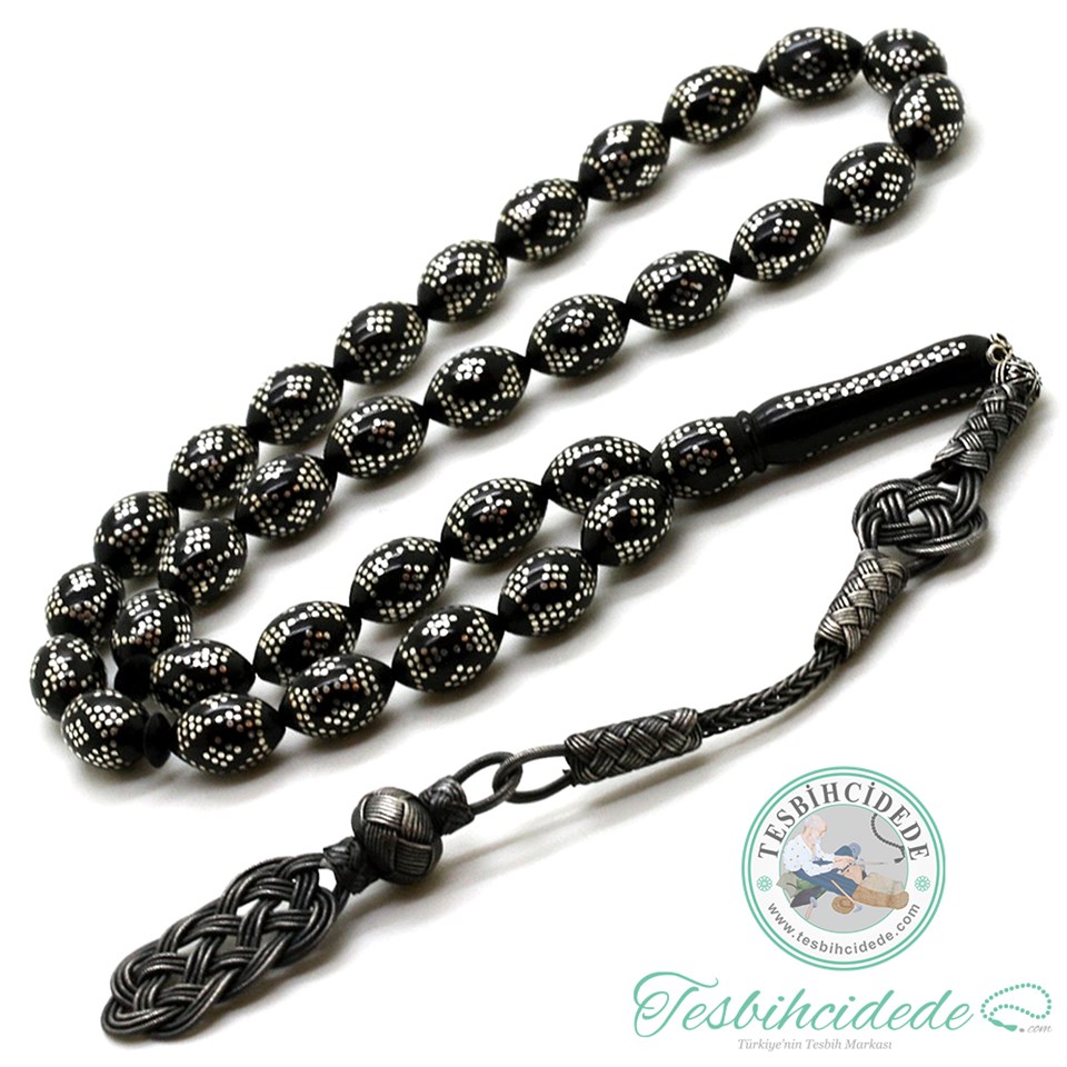 Arpa Kesim Özel Gümüş İşlemeli Erzurum Oltu Taşı Tesbih |