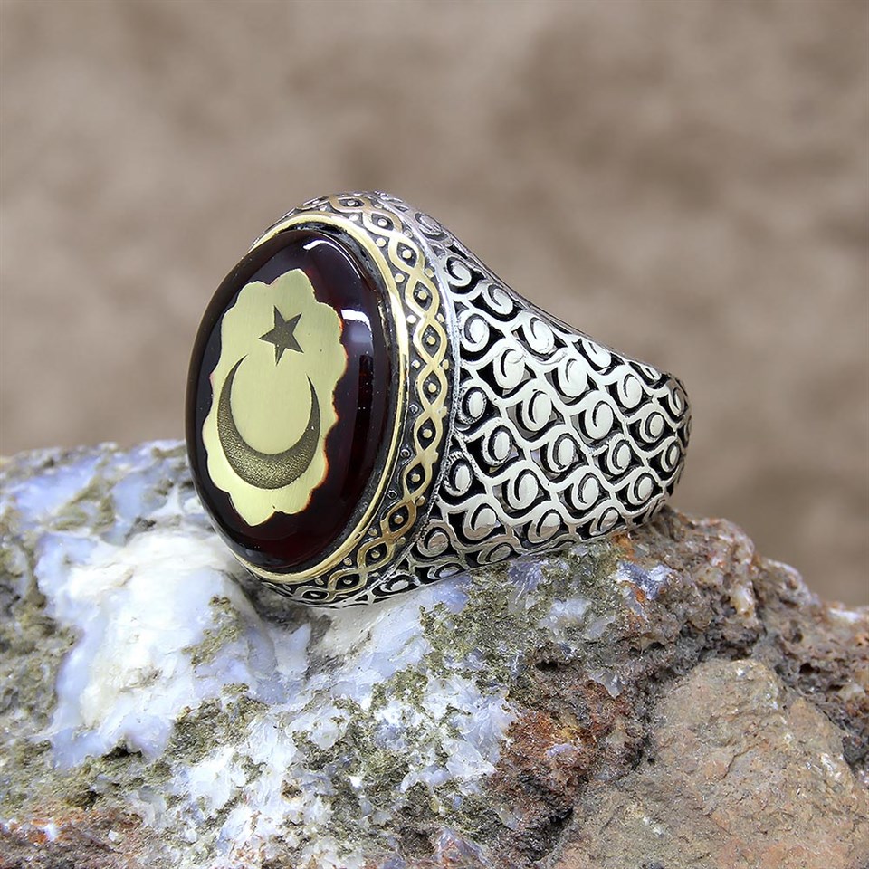| Ürün Adı | Ayyıldız Sıkma Kehribar Taşlı Gümüş Erkek Yüzük |