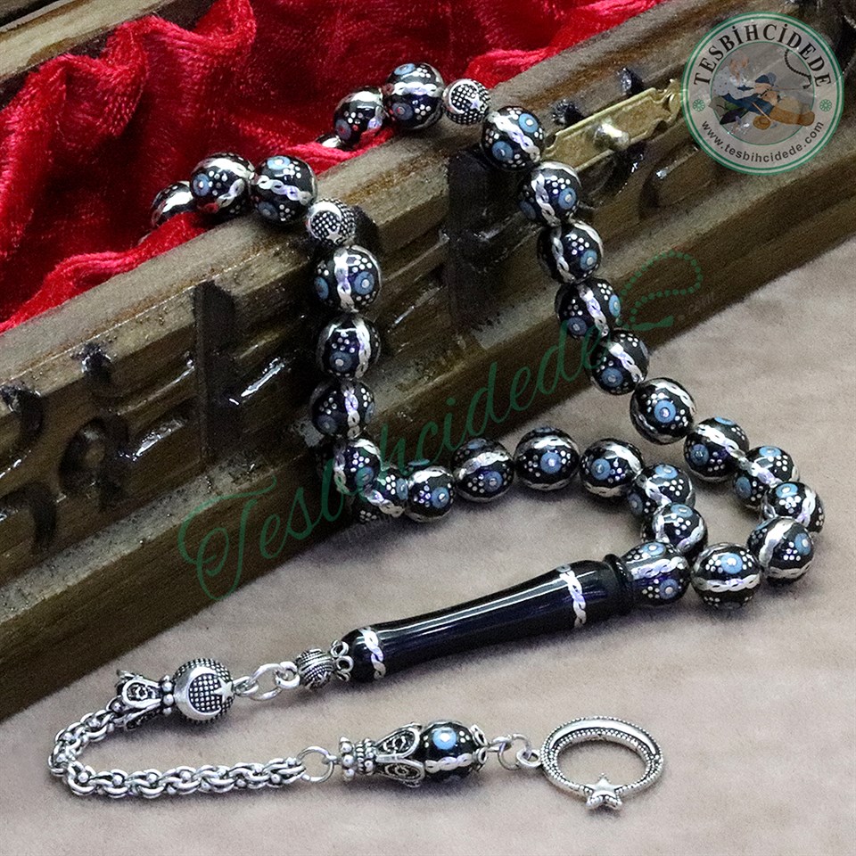 Ayyıldız Tasarım Burgulu Yarma ve Firuze İşlemeli Erzurum Oltu Taşı Tesbih |