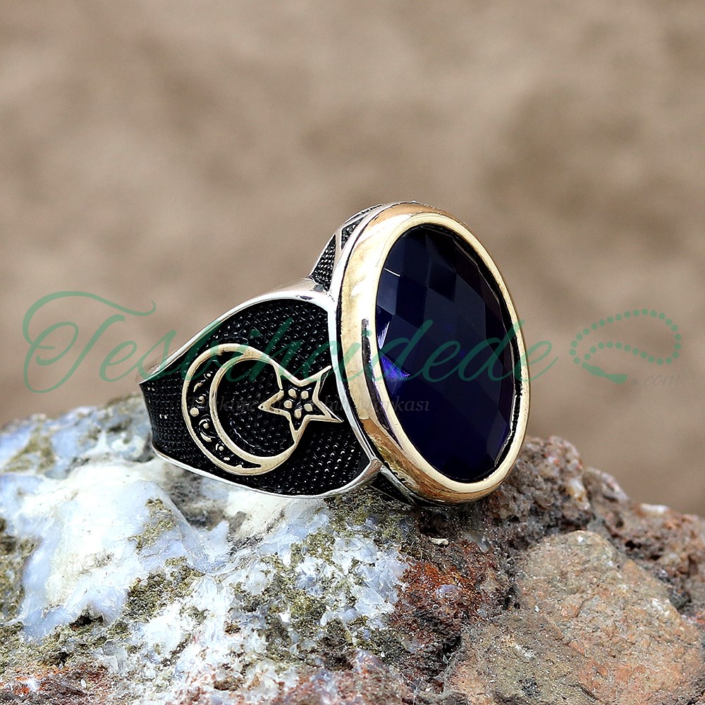 Ayyıldız Tasarım Lacivert Zirkon Taşlı Erkek Gümüş Yüzük |
