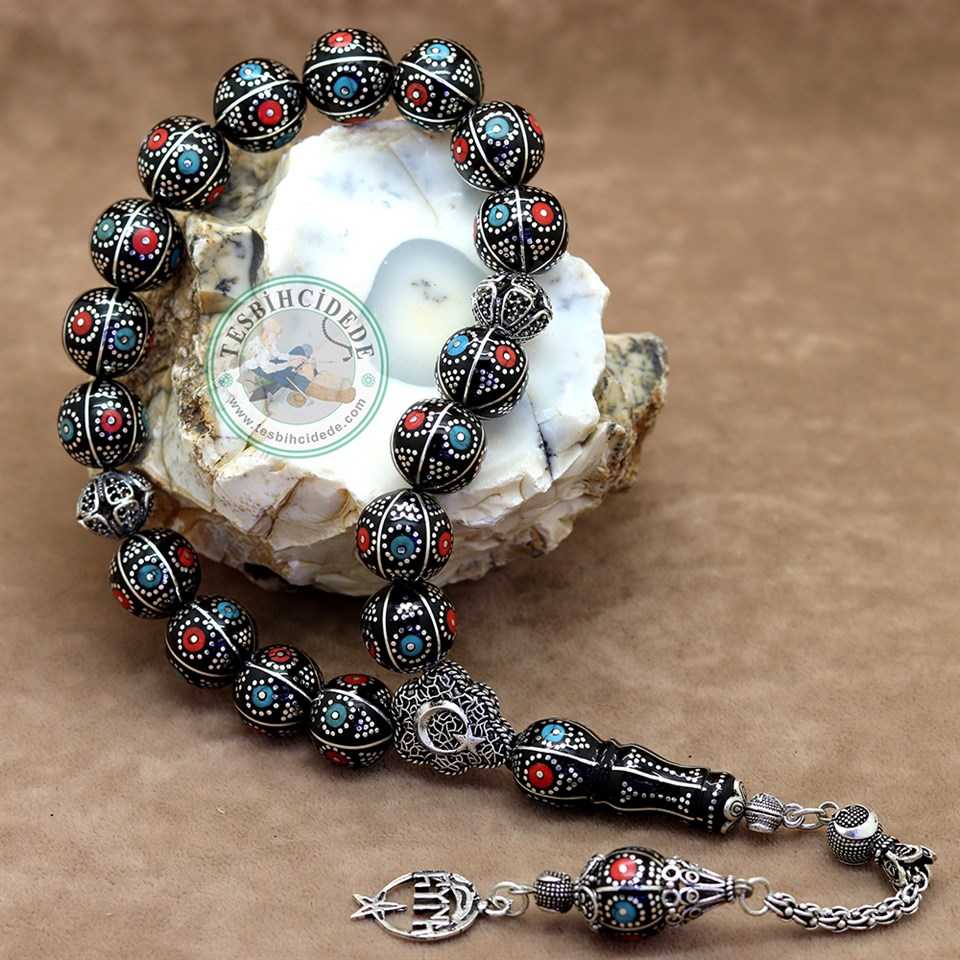 Ayyıldız Türk Tasarım Firuze Mercan İşlemeli Maskot Erzurum Oltu Taşı Tesbih |
