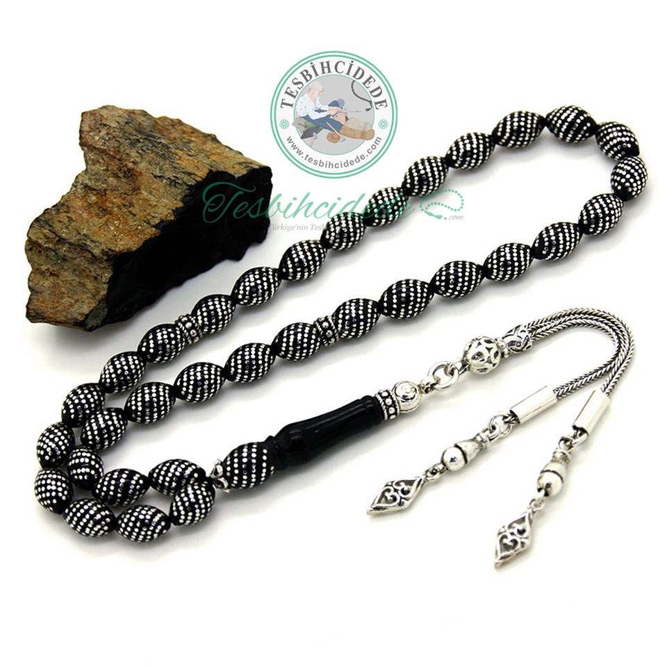 Çeşm-i Bülbül İşlemeli Erzurum Oltu Taşı Tesbih |