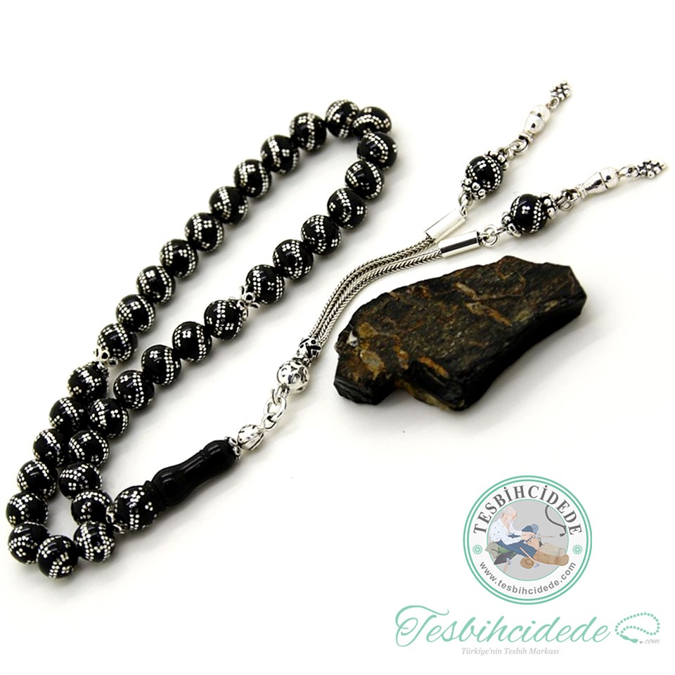 Çift Çeşm-i Bülbül İşlemeli Erzurum Oltu Taşı Tesbih |