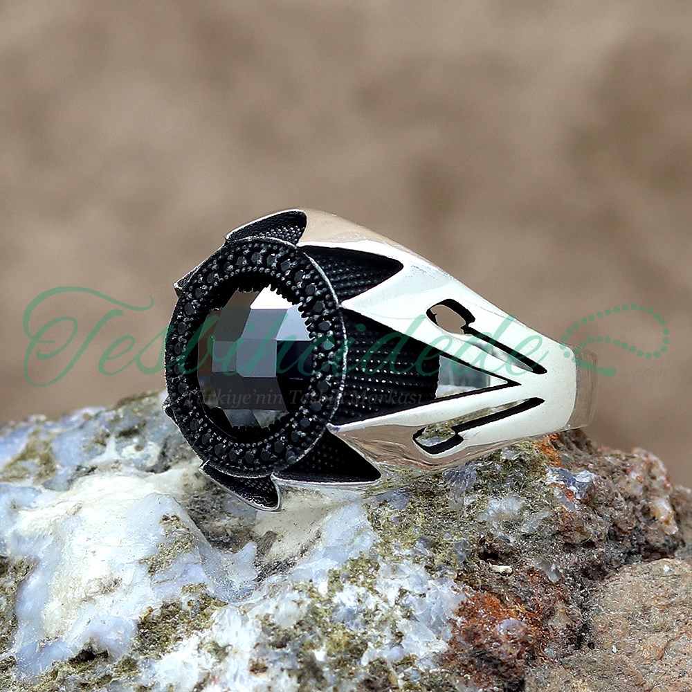 | Ürün Adı | Fasetli Siyah Zirkon Taşlı Gümüş Erkek Yüzük |
