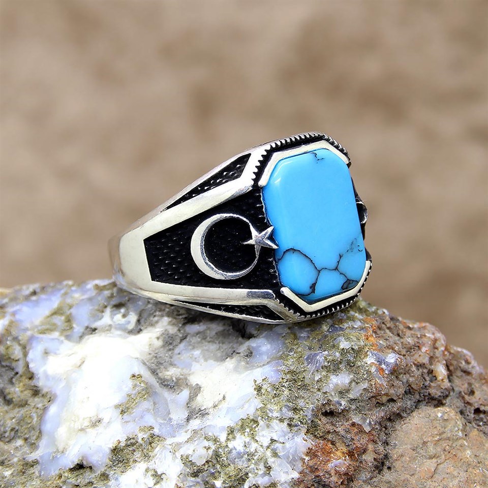 | Ürün Adı | Firuze (Turkuaz) Taşlı Ayyıldız Gümüş Erkek Yüzük |