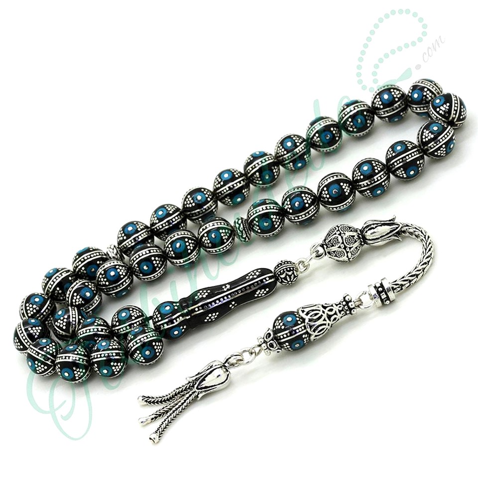 Firuze ve Karpuz İşlemeli Küre Kesim Erzurum Oltu Taşı Tesbih |
