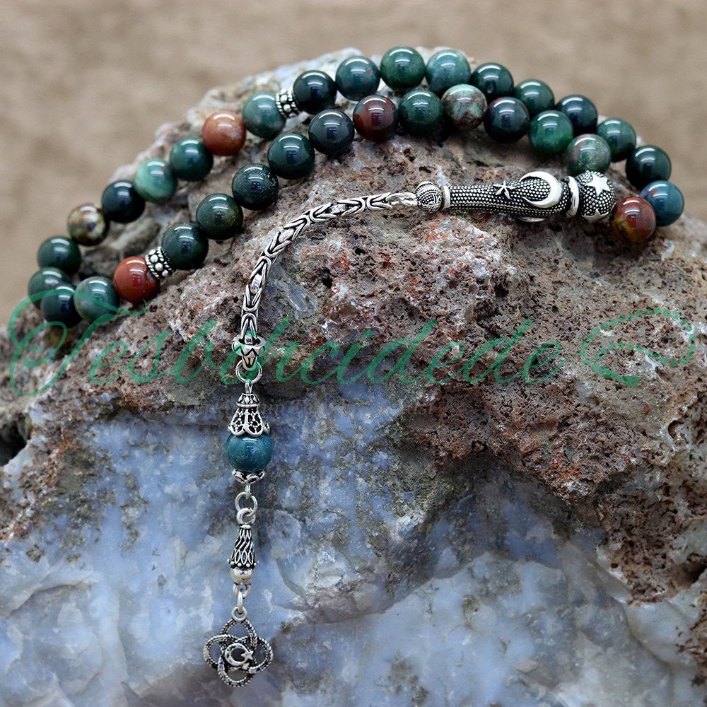 | Ürün Açıklaması | Doğal yaşamda çok nadir bulunan bir hematit taşıdır. Koyu yeşil renkte olup üzerinde kan damlalarına benzeyen kırmızı lekeler bulunur. Bu lekeler taşın yapısında bulunan demir oksit mineralinden kaynaklanmaktadır. |