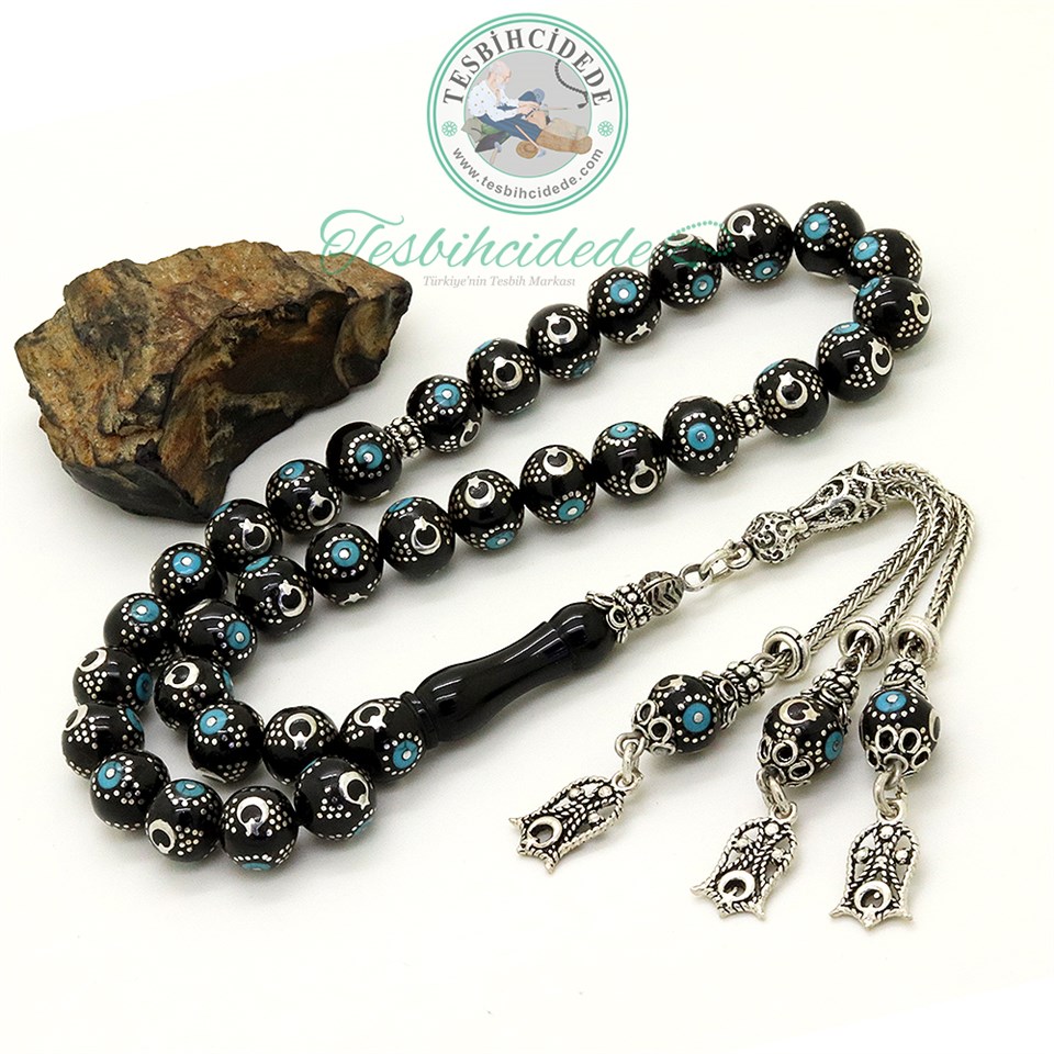 | Ürün Adı | Gümüş Ayyıldız ve Firuze İşlemeli Erzurum Oltu Taşı Tesbih |