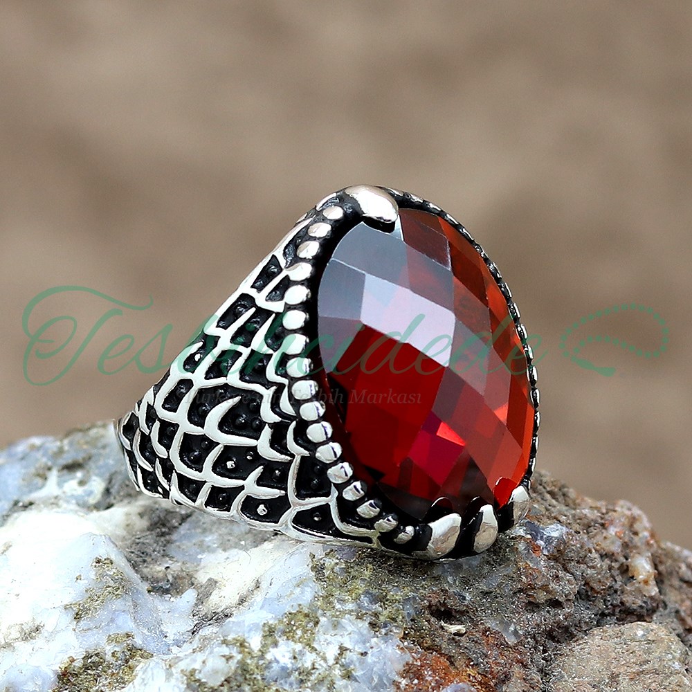 | Ürün Adı | Gümüş Kartal Pençeli Kırmızı Zirkon Taşlı Erkek Yüzük |