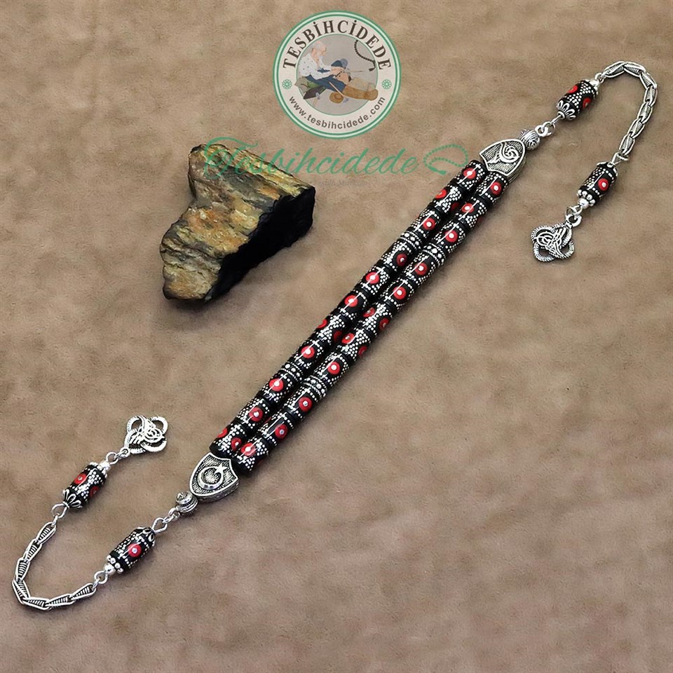 | Ürün Adı | Gümüş Tuğra Ayyıldız Tasarım Mercan İşlemeli Kesme Erzurum Oltu Taşı Tesbih |