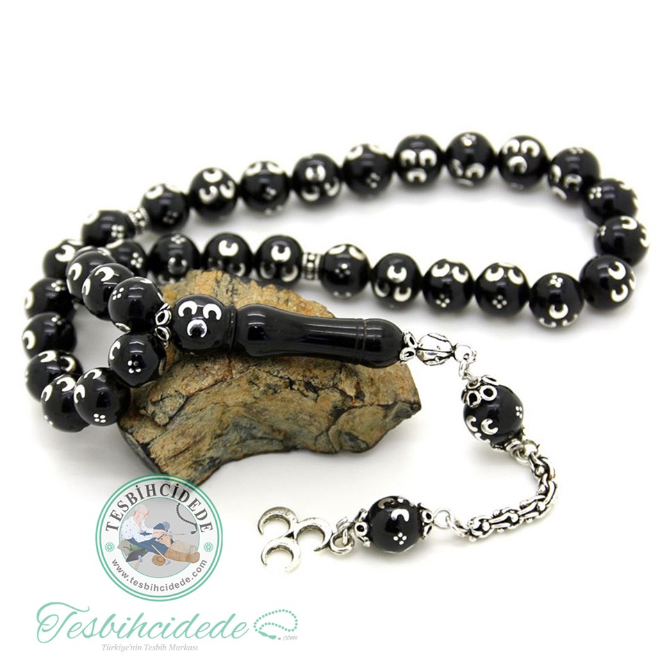 Gümüş Üç Hilal İşlemeli Erzurum Oltu Taşı Tesbih |