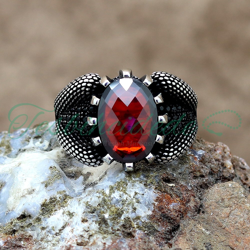 | Ürün Adı | Kartal Pençeli Kırmızı Zirkon Taşlı Gümüş Erkek Yüzük |