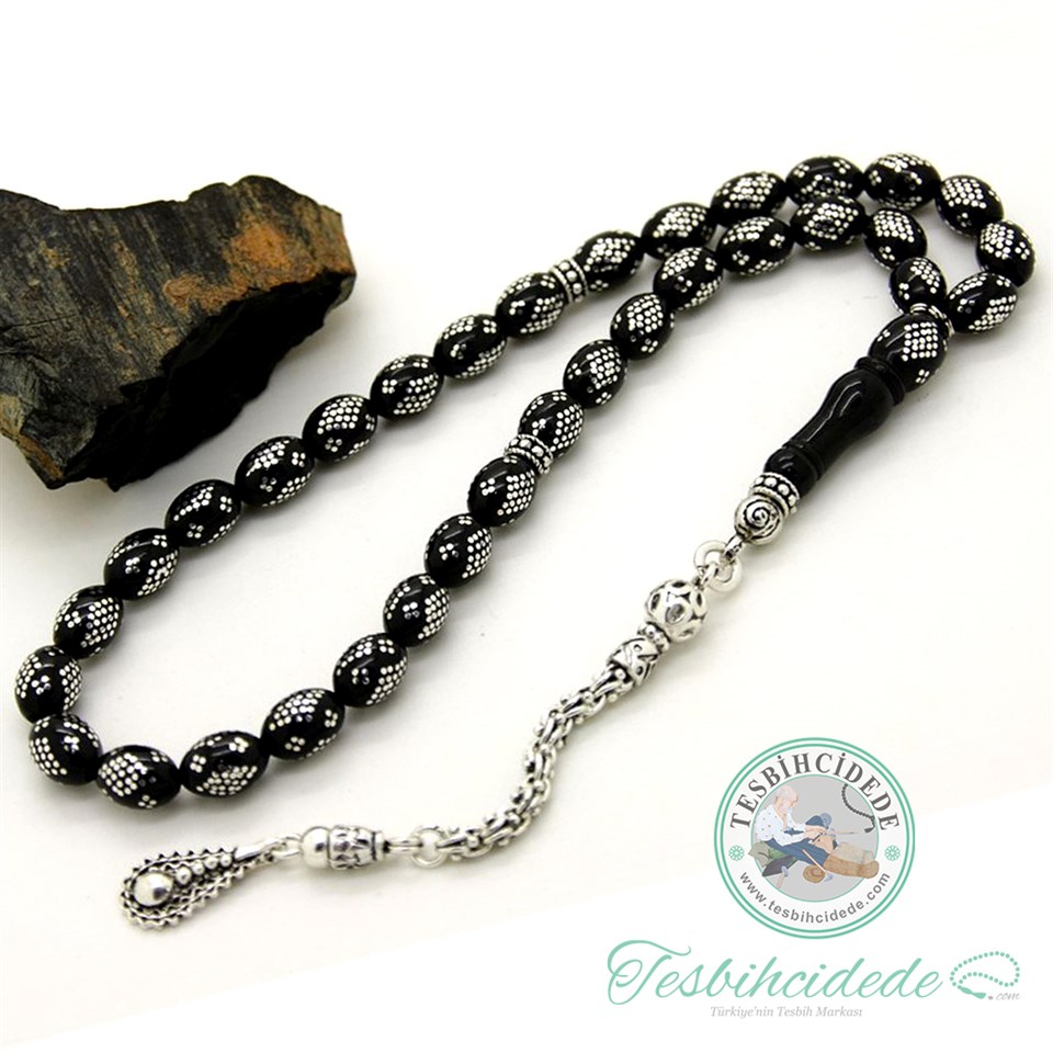 Kızılcık Kesim Baklava İşlemeli Erzurum Oltu Taşı Tesbih |