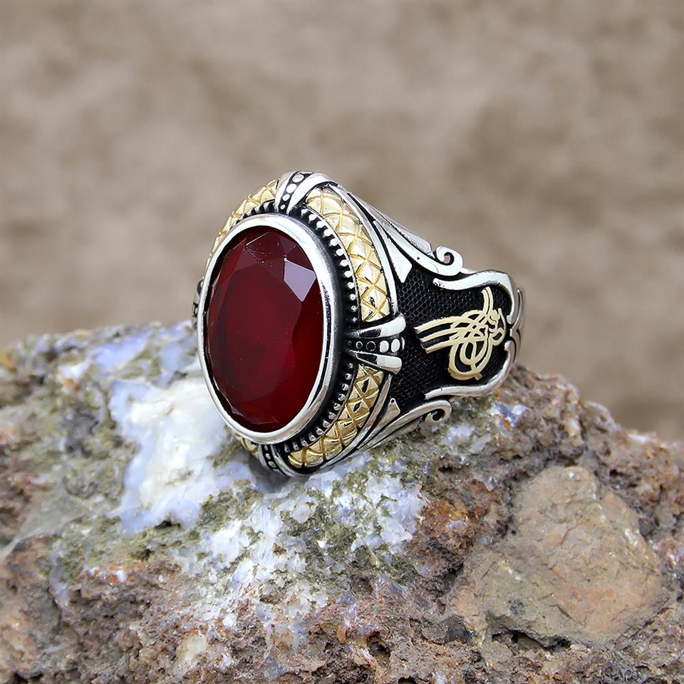 | Ürün Adı | Kök Yakut Taşlı Tuğra Gümüş Erkek Yüzük |