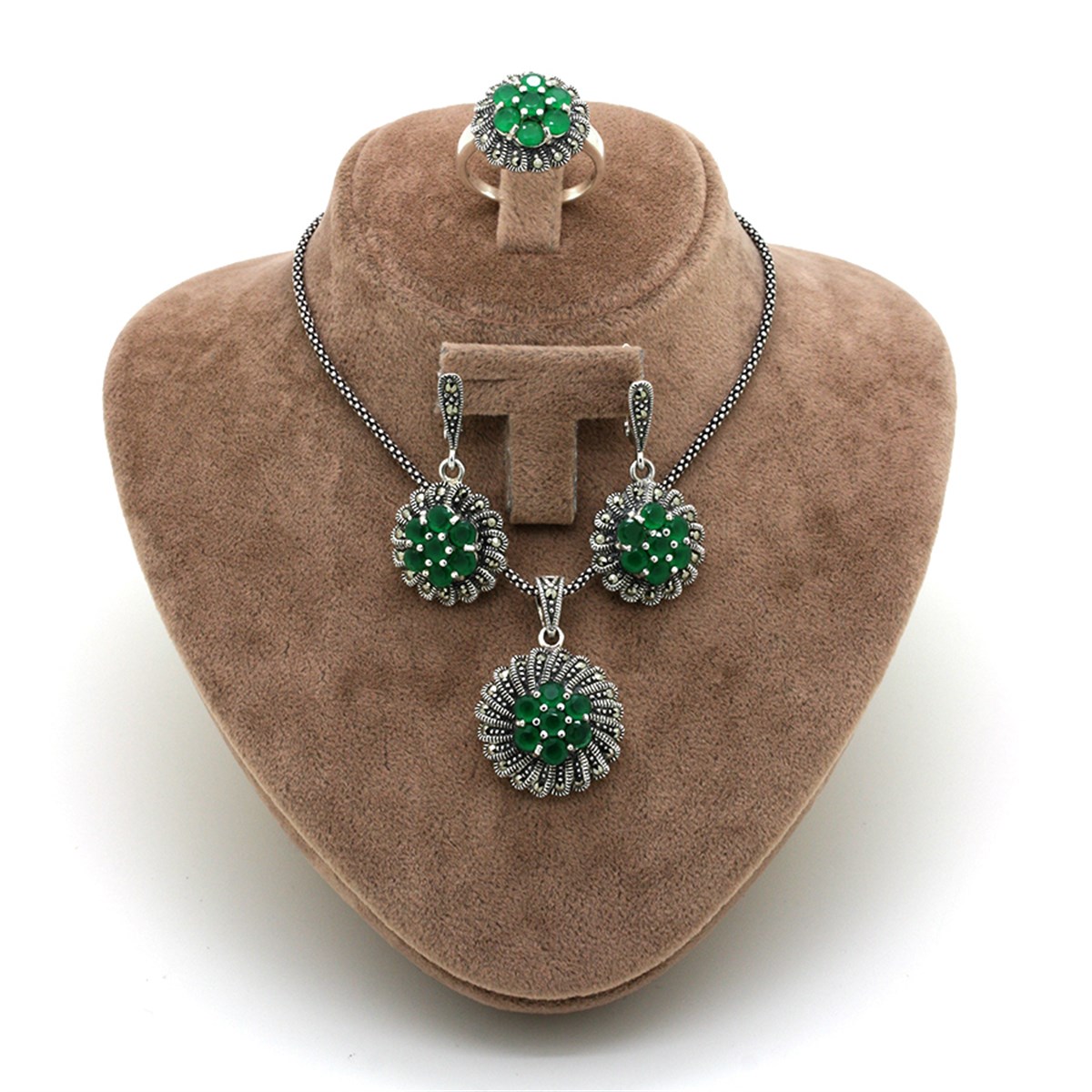| Ürün Adı | Kök Zümrüt Taşlı Markazit Gümüş Üçlü Takım |