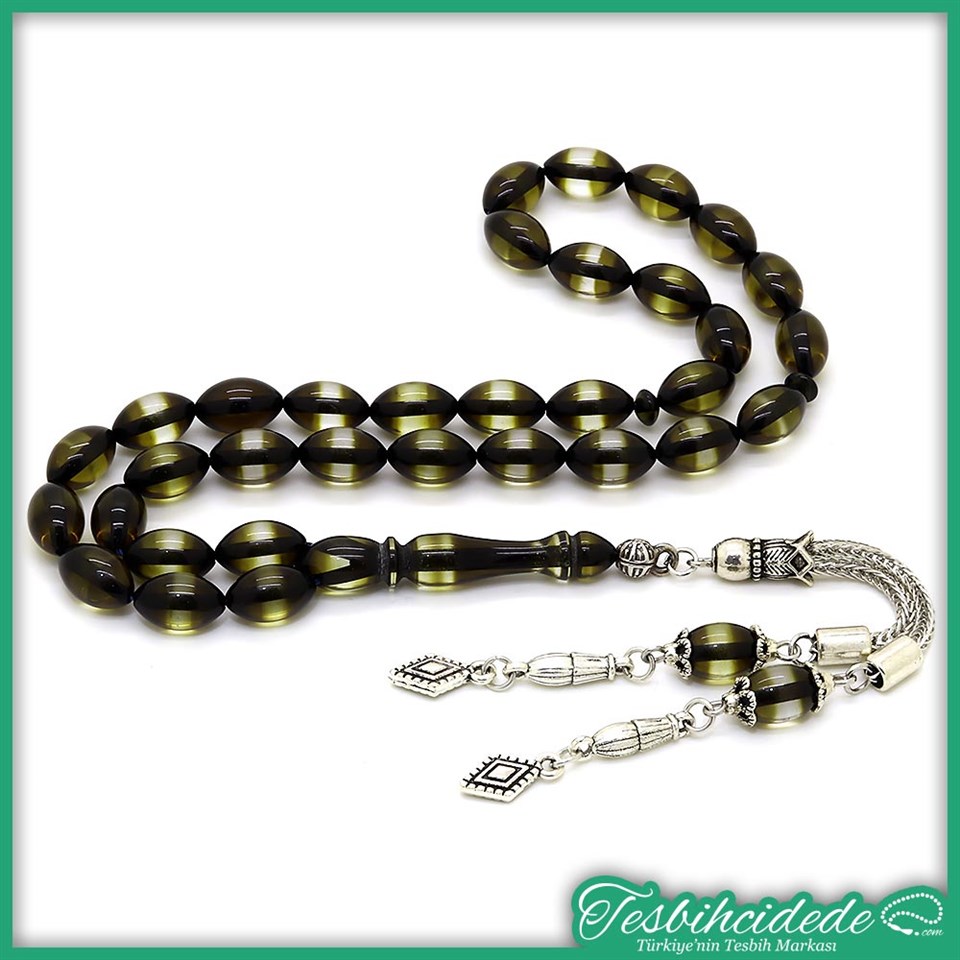 Koyu Yeşil Sürmeli Toz Kehribar Tesbih |