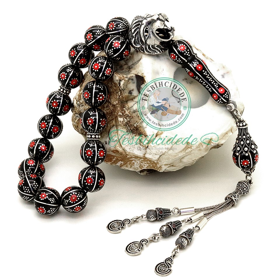 Kükreyen Aslan Tasarım Mercan Karpuz İşlemeli Maskot Erzurum Oltu Taşı Tesbih |