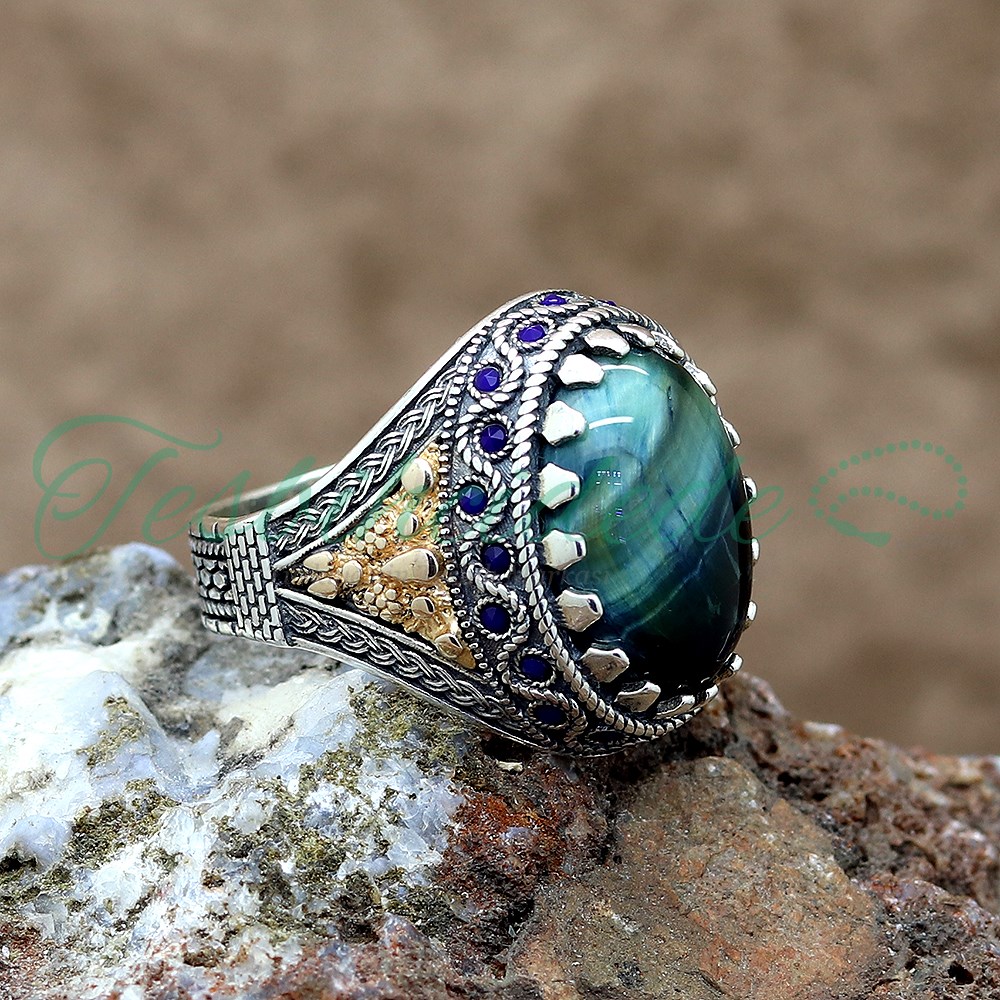 Labradorit Taşlı Gümüş Erkek Yüzük |