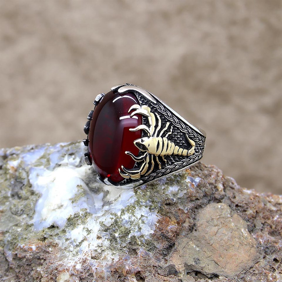 | Ürün Adı | Lal Taşlı Akrep Gümüş Erkek Yüzük |