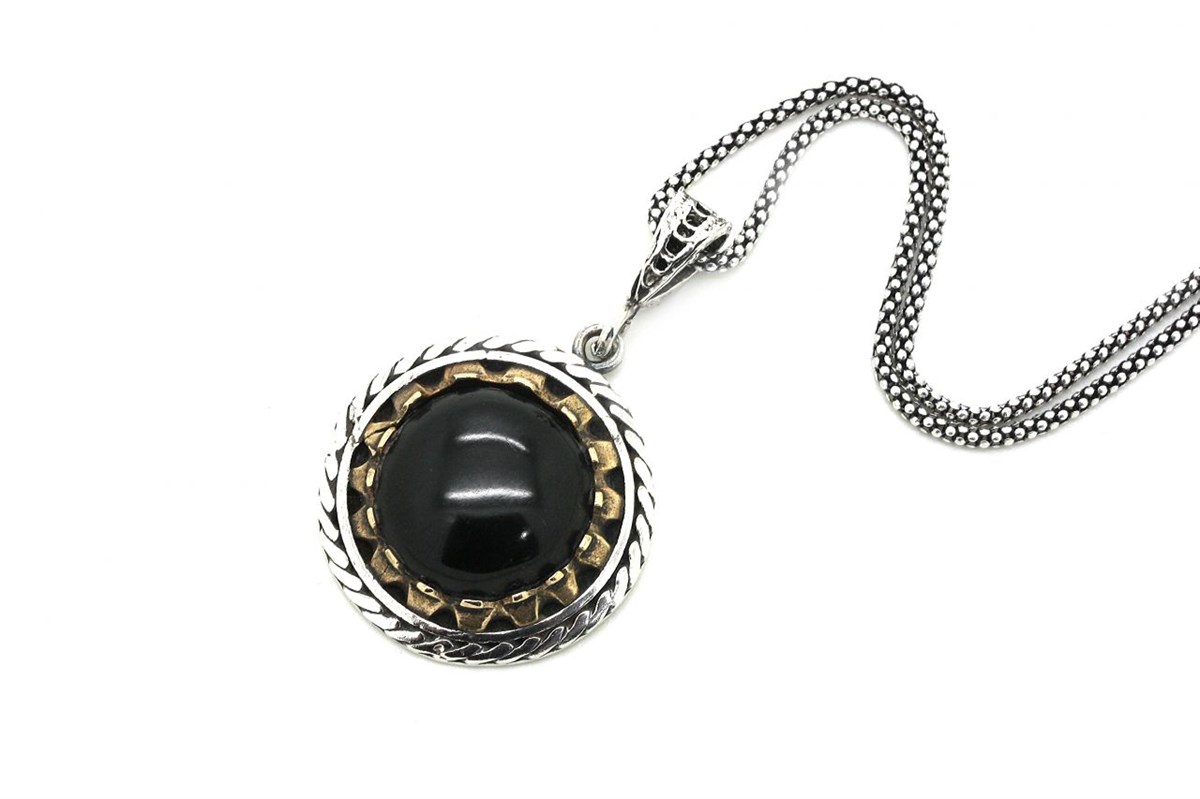 Özel el işçiliğiyle estetik bir görünüm sağlayan Hakiki Oltu Taşından üretilen bu kolye modeli, koleksiyonuna yeni bir tasarım kazandırmak isteyenler için ideal modeller arasında yer alıyor.