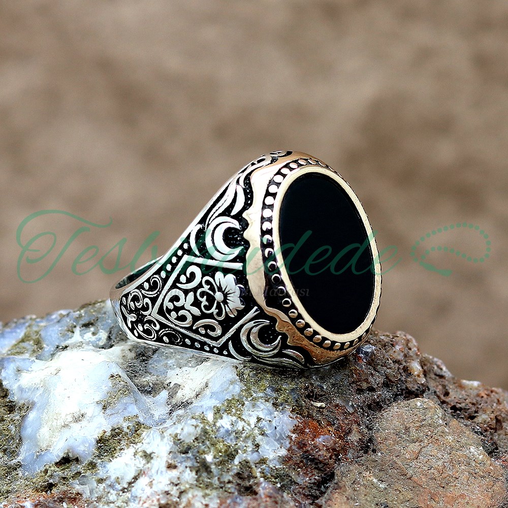 Oniks Taşlı Gümüş Erkek Yüzük |