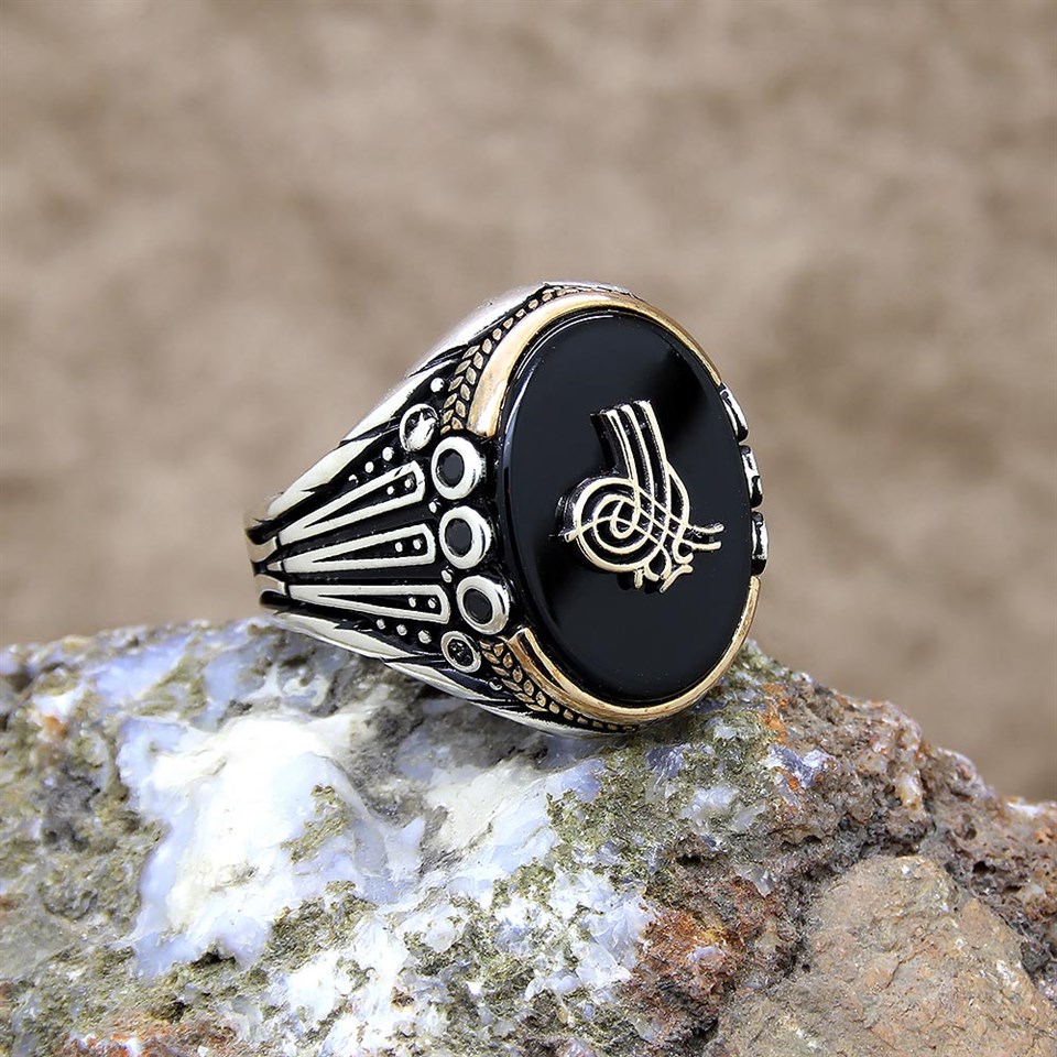 | Ürün Adı | Oniks Taşlı Tuğra Motifli Gümüş Erkek Yüzük |