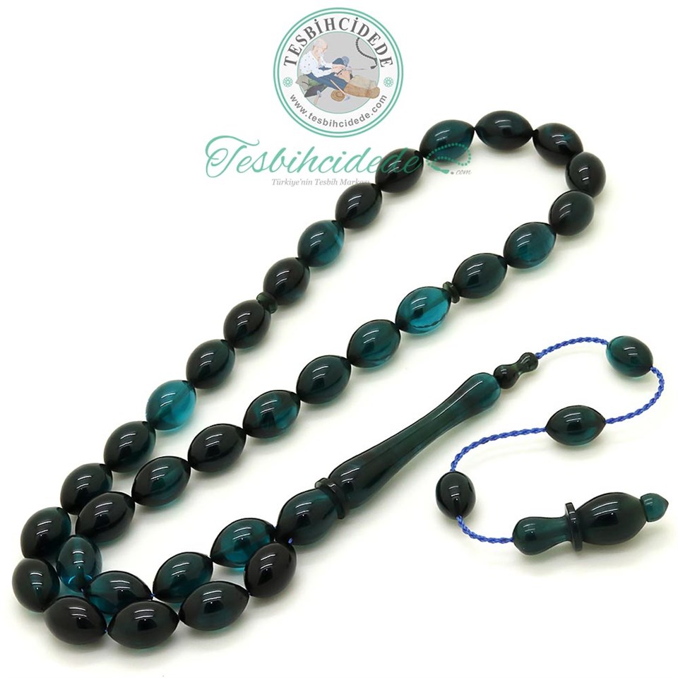 Osmanlı Formda Koyu Petrol Mavisi Sıkma Ateş Kehribar Tesbih |
