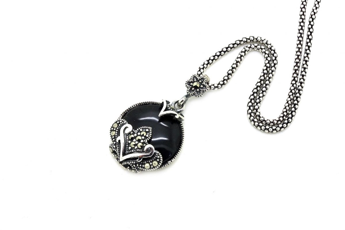Tesbihci Dede atölyelerinde birinci sınıf işçilik ve oltu taşından imal edilen kolye, gümüş zincir ile süslenerek daha parlak ve dikkat çekici bir hale getirildi.