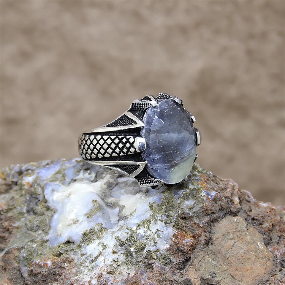 Rutil Kuvars Taşlı Gümüş Erkek Yüzük |