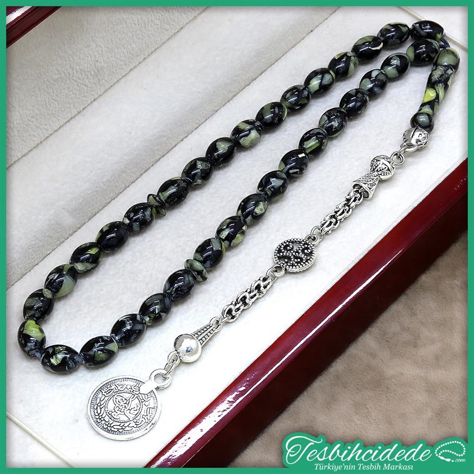 Siyah Parçalı Beyzi Kesim Kokulu Toz Kehribar Tesbih |