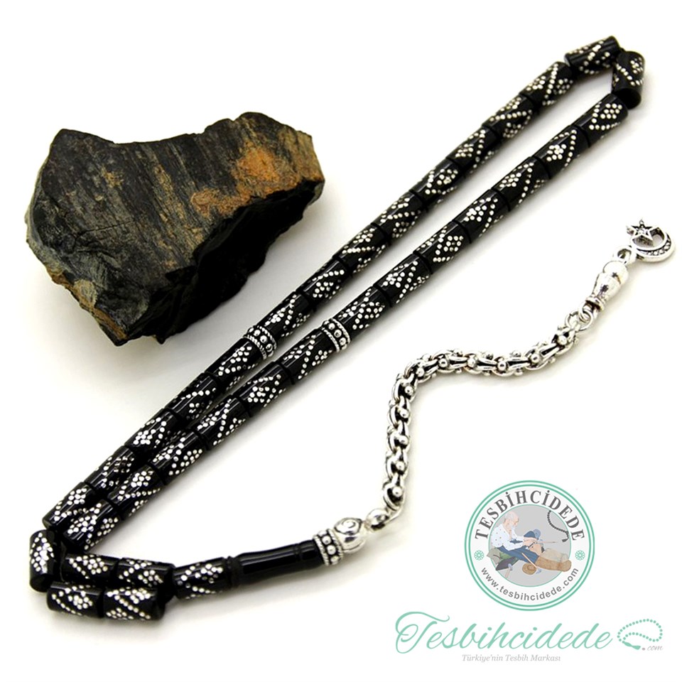 Tek Zigzag ve Baklava İşlemeli Kesme Model Erzurum Oltu Taşı Tesbih |