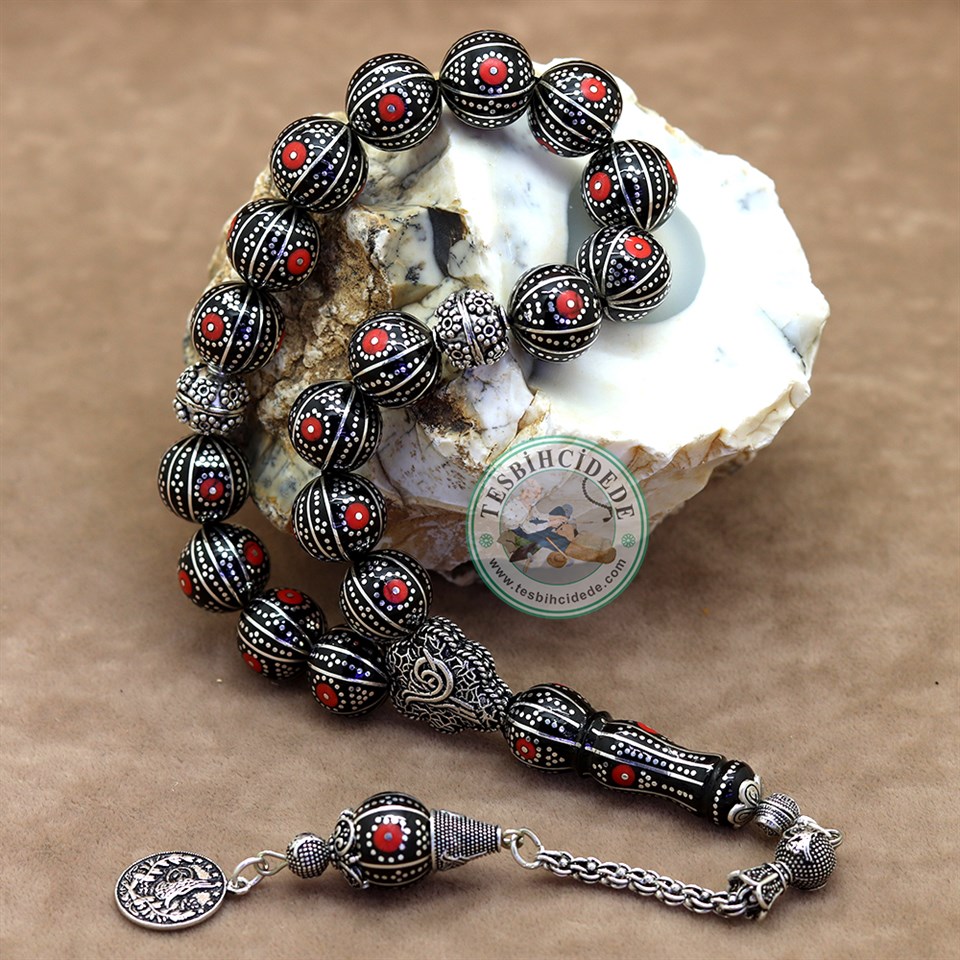 Tuğra Tasarım Mercan Karpuz İşlemeli Maskot Erzurum Oltu Taşı Tesbih |