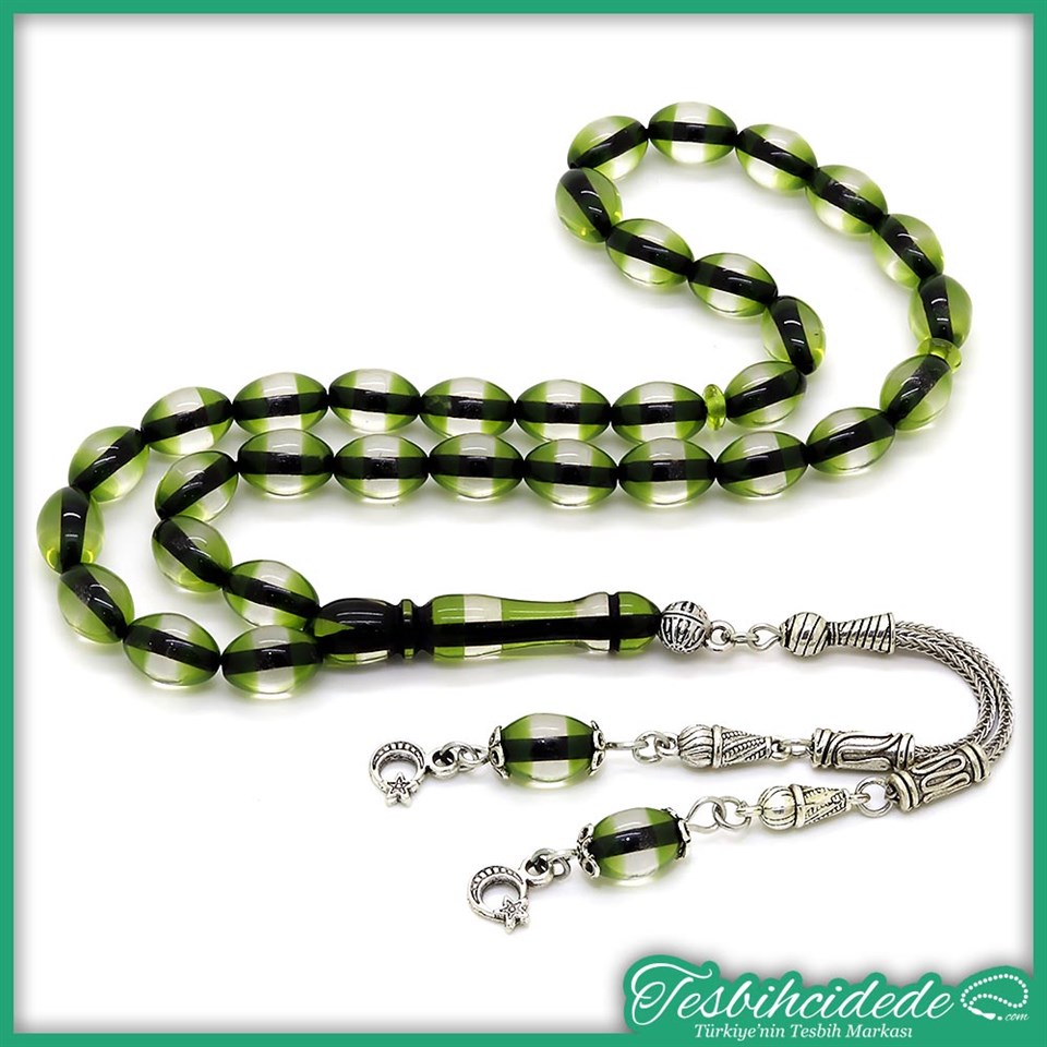 Yosun Yeşili Sürmeli Toz Kehribar Tesbih |