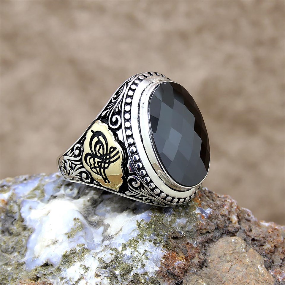 | Ürün Adı | Zirkon Taşlı Tuğra Motifli Gümüş Erkek Yüzük |
