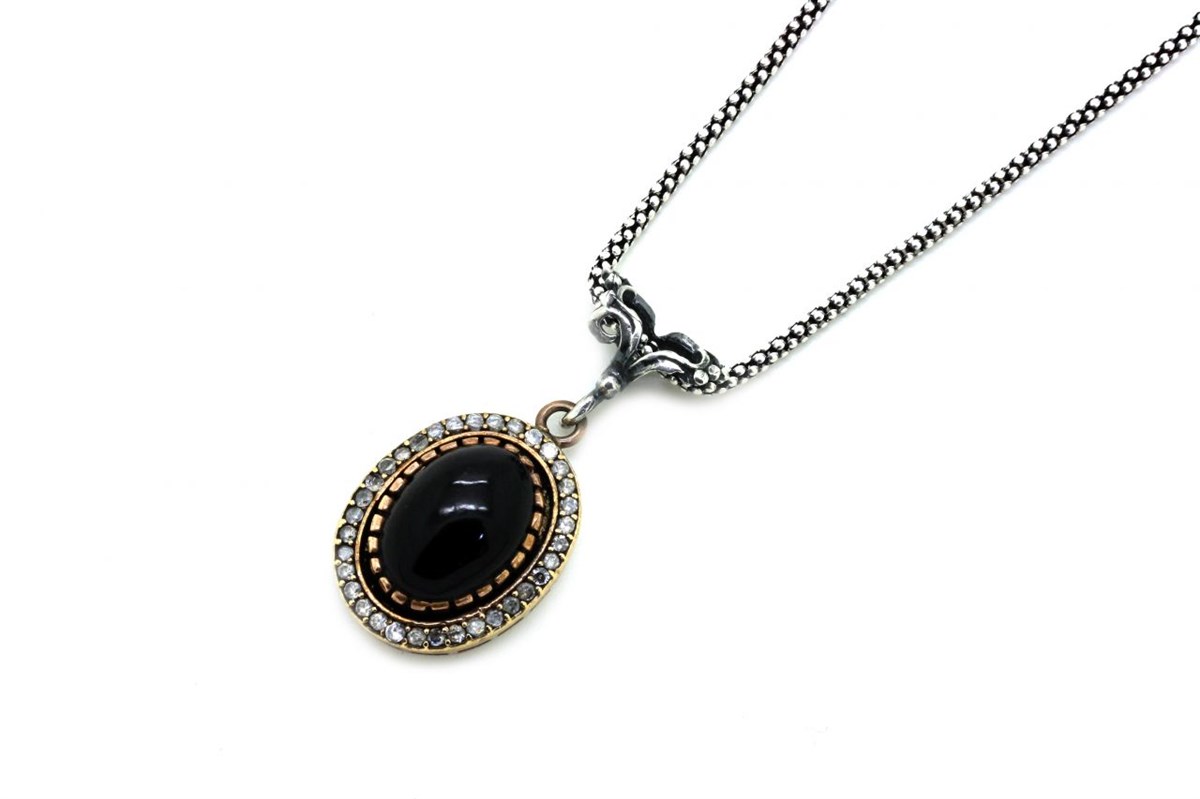 Özel el işçiliğiyle estetik bir görünüm sağlayan Hakiki Oltu Taşından üretilen bu kolye modeli, koleksiyonuna yeni bir tasarım kazandırmak isteyenler için ideal modeller arasında yer alıyor.