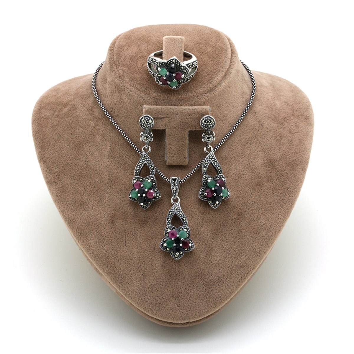 | Ürün Adı | Zümrüt, Yakut ve Safir Taşlı Markazit Gümüş Üçlü Takım |